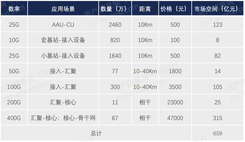 表:5G光模块市场规模预测(单位:亿元)