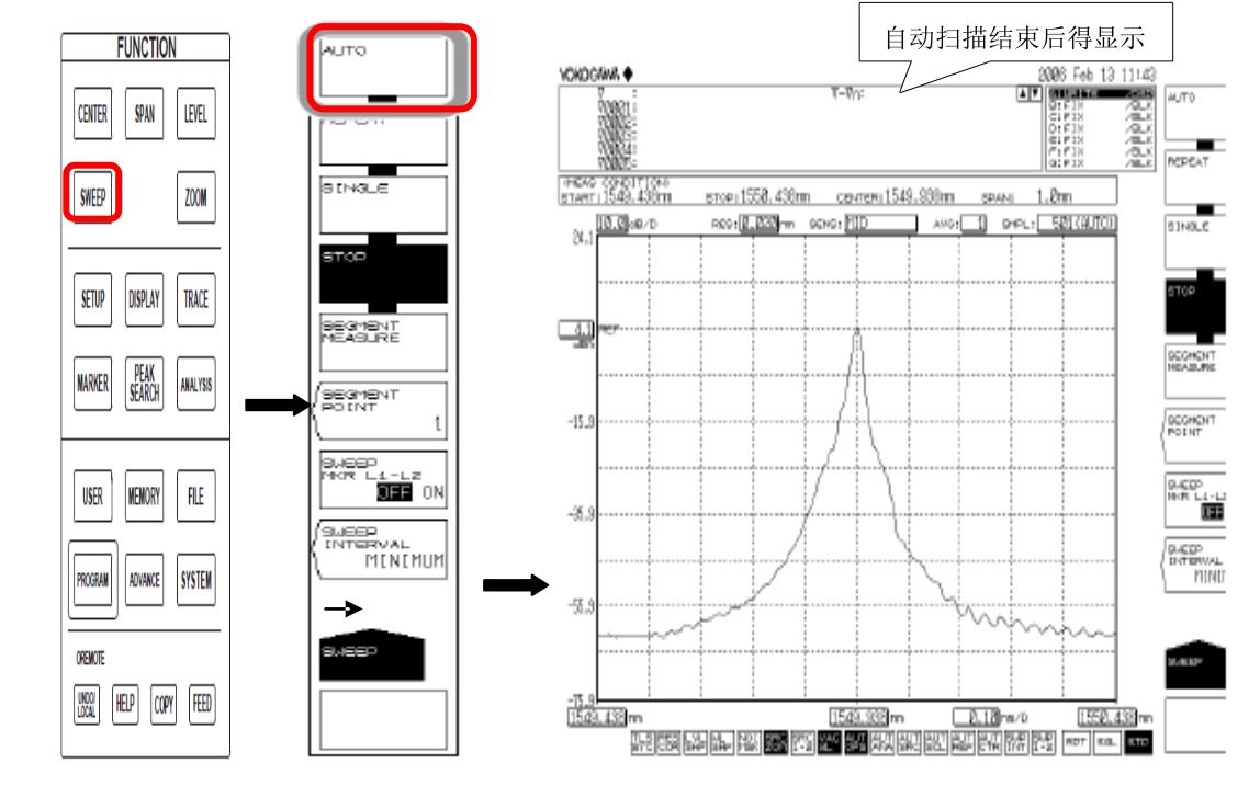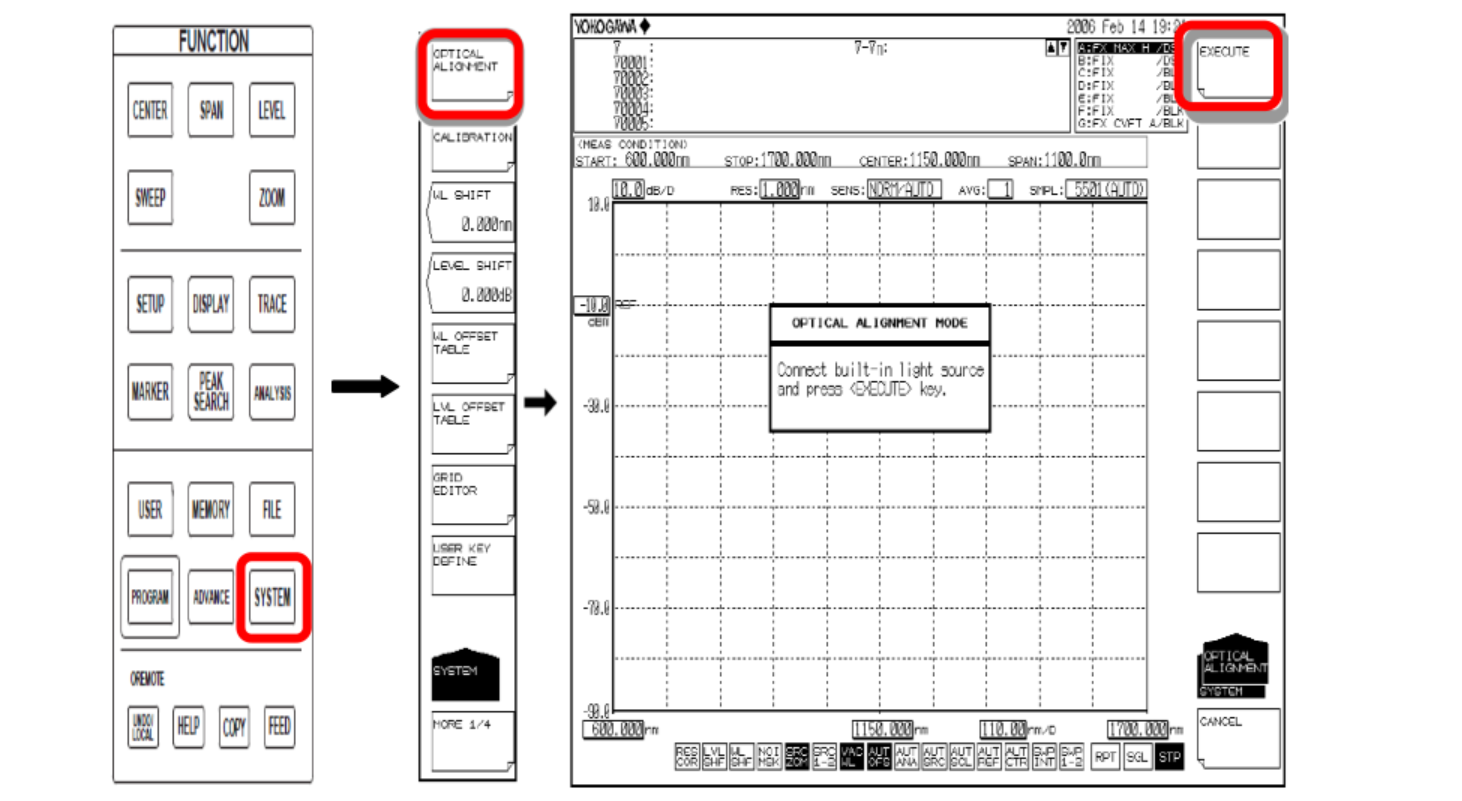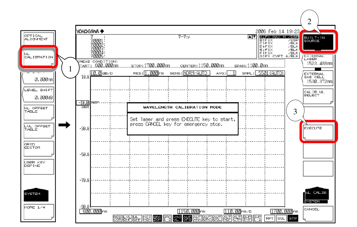 ③按 EXECUTE 软键,执行波长校准。 校准结束后,返回之前得画面。