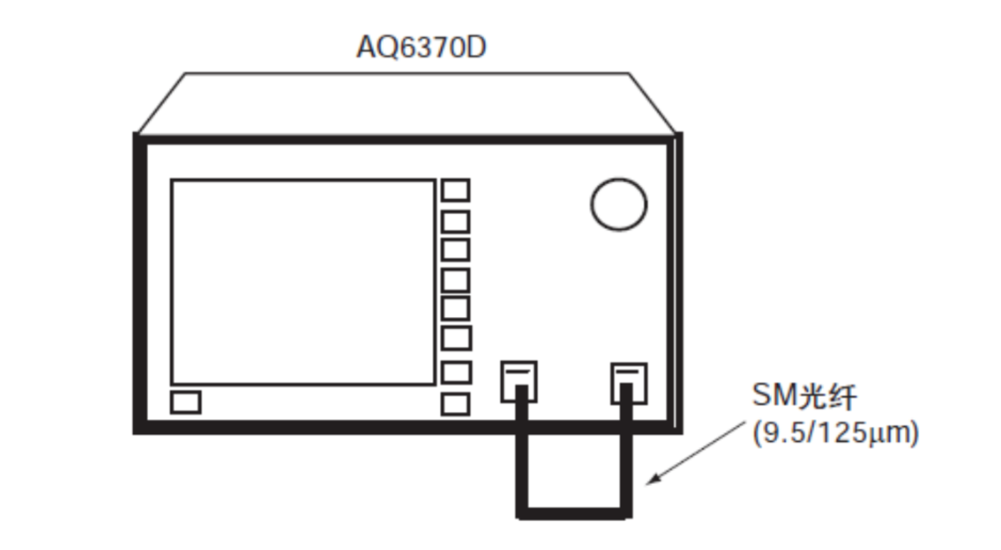 AQ6370D 开机校准,打开电源,FC-FC 接口得光纤将 AQ6370D 得光输入连接器与光输出连接器连接起来,如图所示。