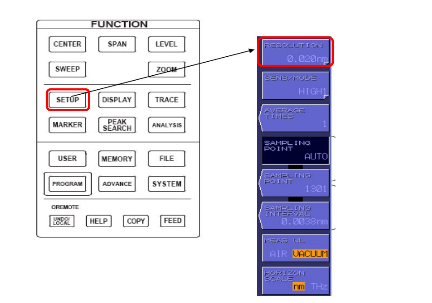 ④按 SETUP 键,设置分辨率为最高精度 0、 02nm。
