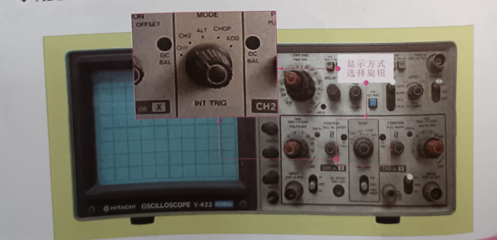 显示方式选择旋钮 (MODE): 设置 CH-1、CH-2、CHOP、ALT和ADD共5个挡位,如图 2-13 所示。