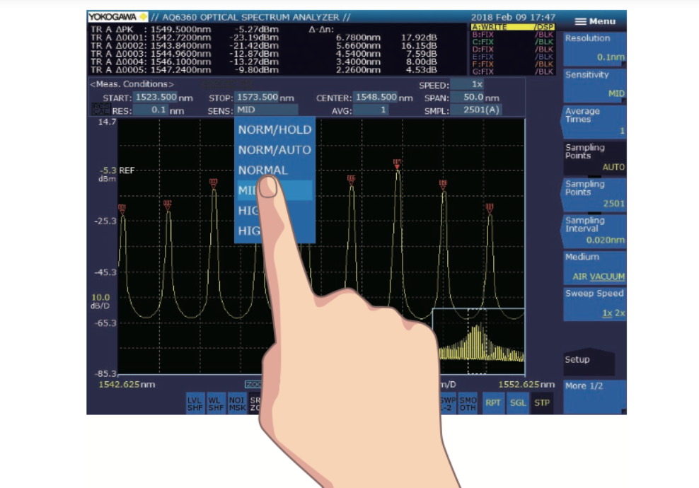 YOKOGAWA AQ6360是一款基于衍射光栅技术的经济高效光谱分析仪。AQ6360满足电信设备(如激光器、光收发器和光放大器)工业制造的典型测量需求。AQ6360的波长范围为1200到1650纳米,用于制造测试的理想性能。其自由空间光学输入结构设计保证了高耦合效率和测量重复性。横河AQ6360的附加功能和功能包括内置的分析功能和以太网和GPIB远程接口。