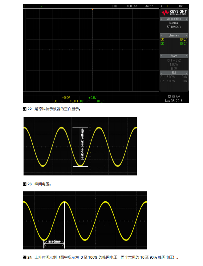 频率:该测量用于计算波形的频率。 该列表旨在让您了解多数示波器上可用的测量类型。 不过,大多数示波器可执行的测量还有更多。
