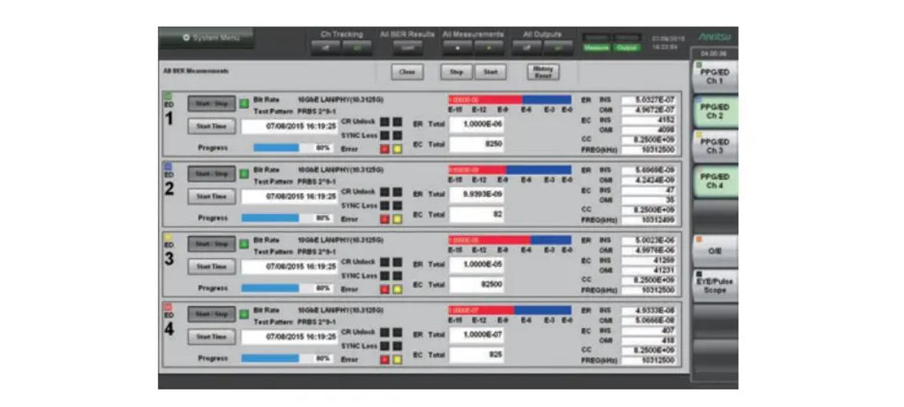 此外,BERTS可扩展至4英寸,从而支持所有QSFP+模块通道的同步错误测量,由于耗时的通道切换操作已被取消,所以这能够进一步减少70%的测量时间。