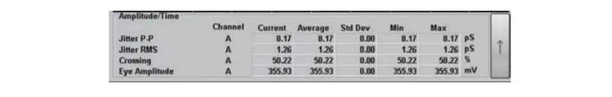 支持的测量包括:0电平、1电平、SNR、眼图闭合率、眼图振幅、眼图高度、眼图宽度、抖动p-p、抖动RMS、消光比、上升时间、下降时间、占空比失真、平均功率、OMA等。