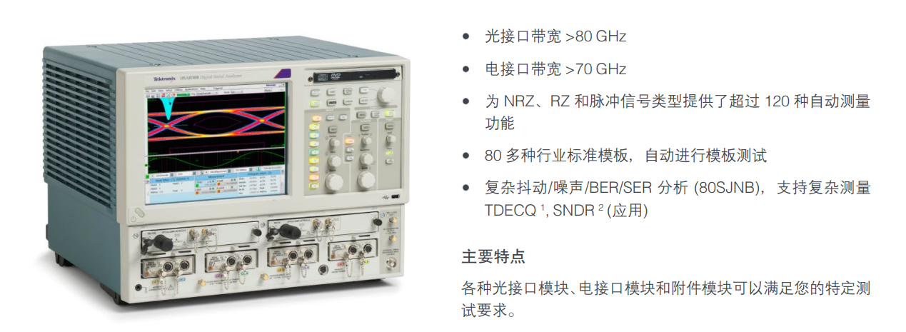 • 带宽高达80GHz以上 进行高速的周期脉冲测试 进行高速的串行数据分析