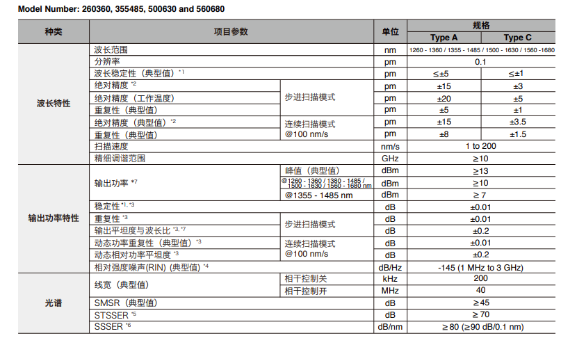 波长范围1240至1680nm可选,输出功率 高达20mW。TSL-570采用全新密封激光腔可以保证全波 段无跳模,并在每个波长提供稳定的输出。其具有0.1pm的 分辨率、亚皮米级的精度和领先市场的90dB/0.1nm超低水 平的信噪比。 TSL-570可以和Santec的光功率计、光开关、偏振控制器 无缝搭配,为WDL和PDL测试提供完整的解决方案。