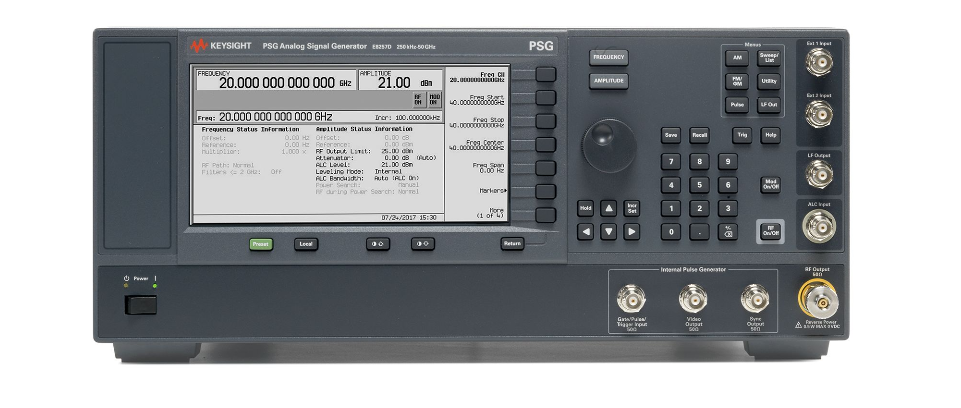 keysight 是德 E8257D 是一款 PSG 模拟信号发生器,它可以生成高达 67 GHz 的连续波形,并提供多种调制方式。它具有计量级的频率和电平准确度,以及极低的相位噪声和杂散特性。它适用于测试高速数字和通信系统、雷达信号仿真、光通信等应用。