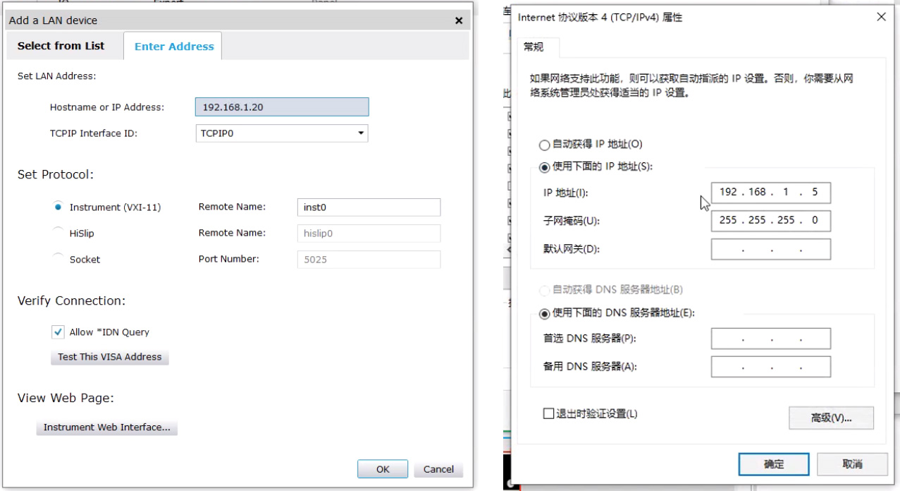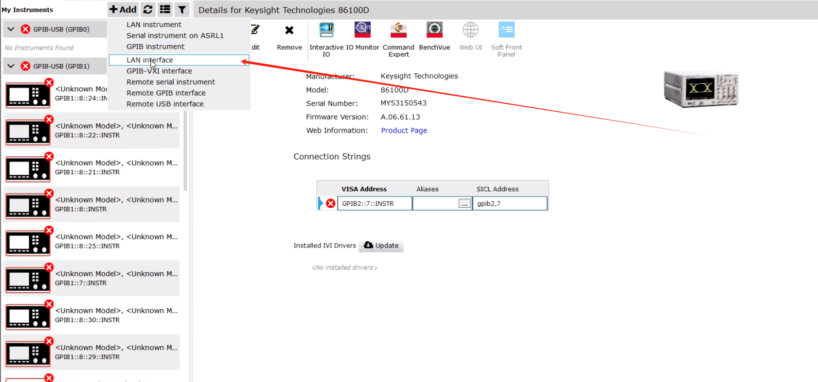 2.找到"My Instruments",点击"Add>LAN>interface"