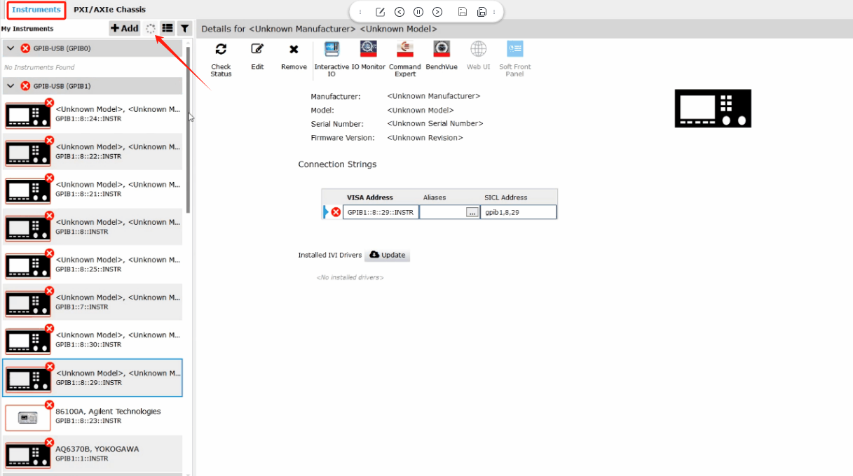 3.打开“FlexDCA软件”软件,找到“Instruments”,点击刷新按钮即可