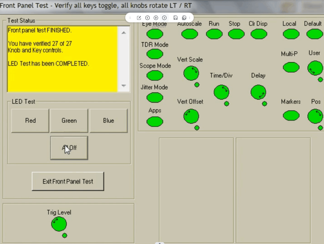 3.测试按钮:选择Font Panel,依次按仪器面板全部按钮,在屏幕显示绿色说明通过(具体操作跟提示来)