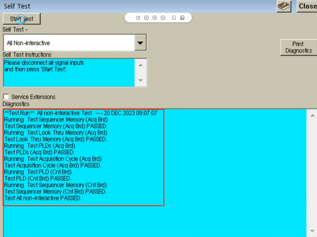 2.选择ALL Non-interactive,看到各项目显示PASSED,说明仪器基础功能无问题。