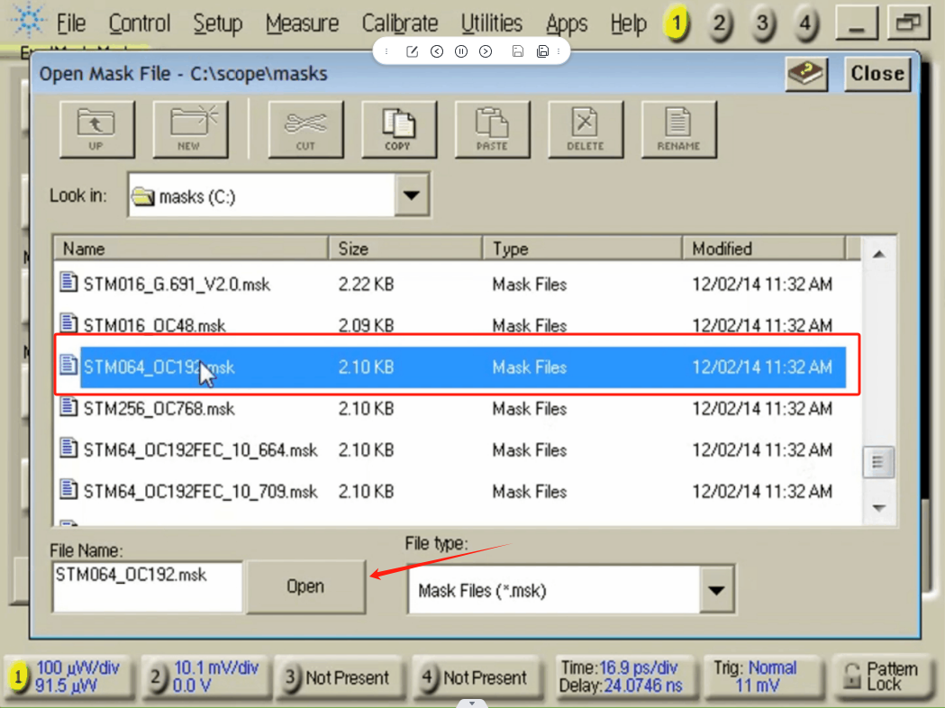 3.打开"Open Mask File for Mask 5",对话框,选择眼图模板。