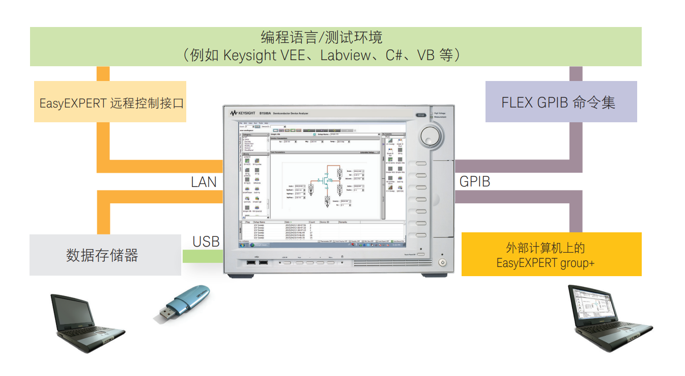 EasyEXPERT group+软件:B1500A配备了基于嵌入式Windows 10平台的居民GUI(图形用户界面)软件,即EasyEXPERT group+,支持高效且可重复的设备表征。