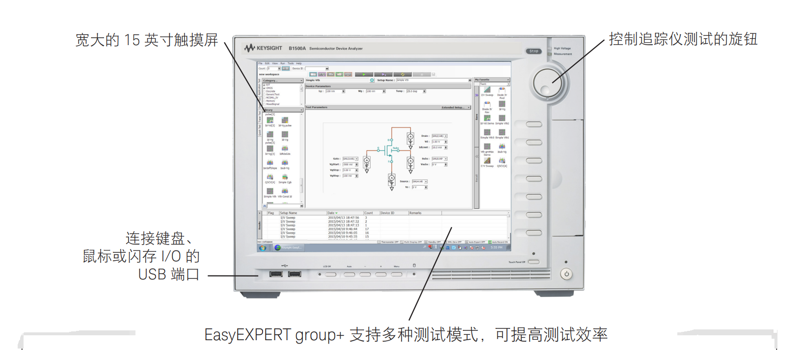 EasyEXPERT软件支持:B1500A半导体器件分析仪现在支持Keysight的新EasyEXPERT软件,这提供了一种新的、更直观的任务导向方法来进行设备表征。EasyEXPERT软件可以处理所有IV-CV切换和误差补偿,这对于简化测试系统配置非常有帮助。