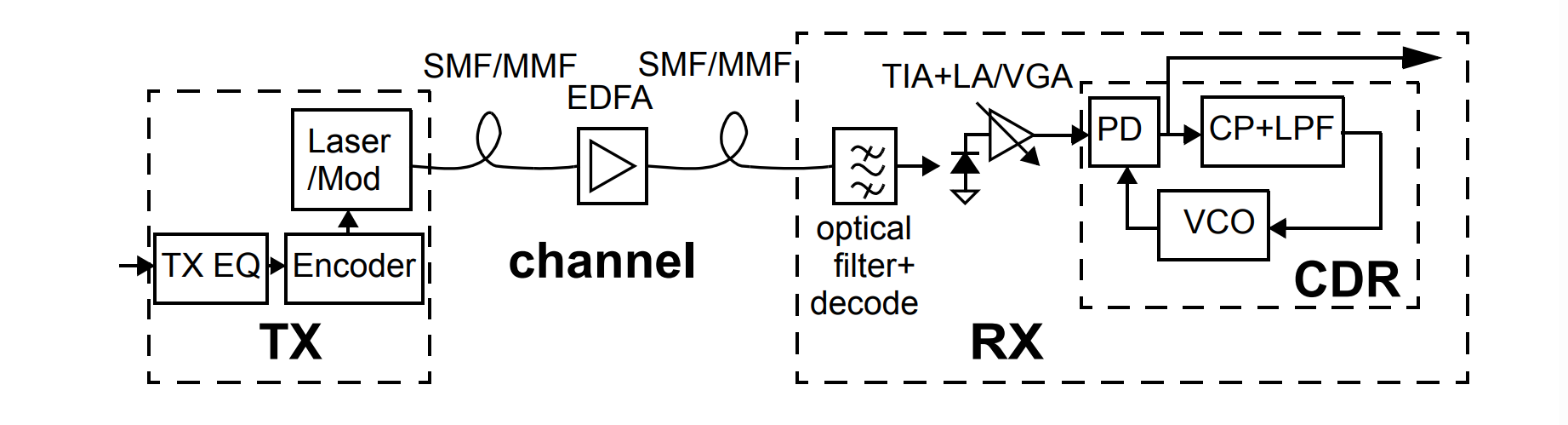 CDR在光通信系统中也扮演着重要角色,它能够从光信号中提取时钟信息,进行同步处理,以及去除传输过程中的抖动,从而保证数据的准确恢复。