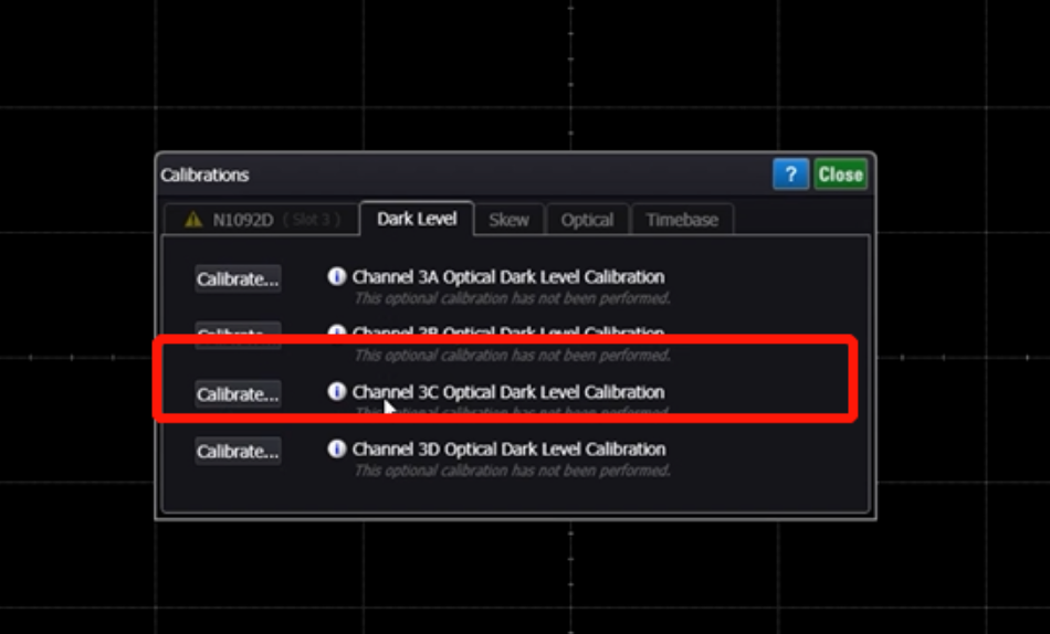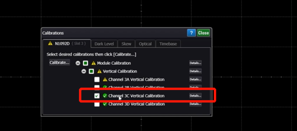 如果自检过程中发现任何问题,我们可以进行自校准。在Tools菜单下选择calibrations,如果没有光源,可以选择进行前两项校准。例如,可以选择模块中的第三个通道进行校准。