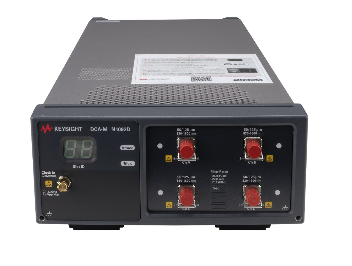 KEYSIGHT N1092系列 采样示波器,虽然省去了屏幕和操作系统,但根据不同的型号,可以配备不同数量的光口和电口,满足各种测试需求。本次介绍的具体型号为N1092D,它拥有4个光口,能够进行多种测试。