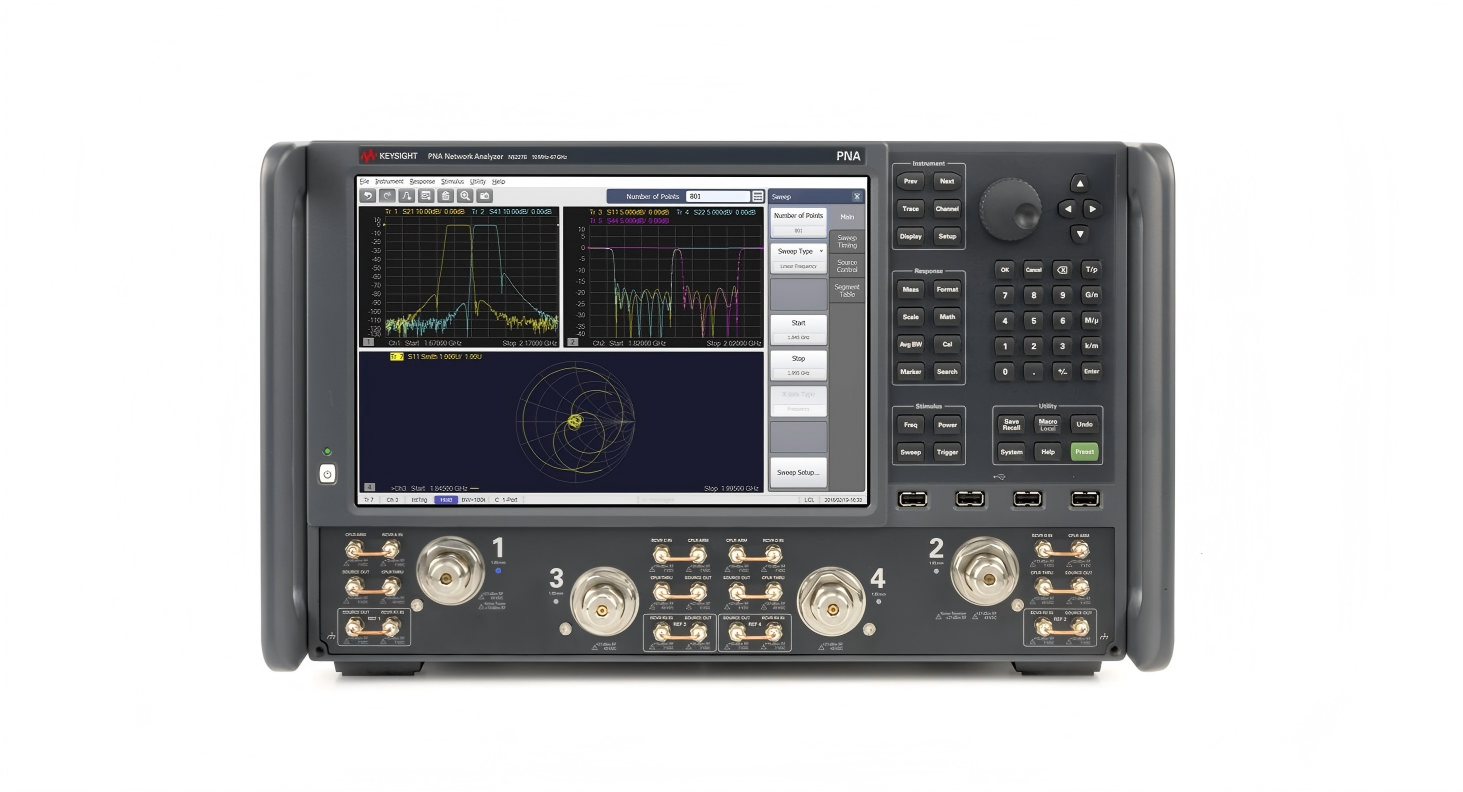 微波网络分析仪是高频测试的核心设备,主要用于测量微波器件的S参数、反射系数、阻抗等关键参数。随着频段向毫米波延伸,传统仪器难以满足高端测试需求,而N5227B 凭借卓越性能,完美破解高频测试精度低、效率慢、场景适配性差等痛点。