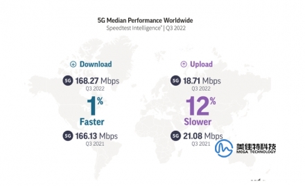 Ookla 在日前公布全球 10 个国家和地区的最快 5G 手机榜单之后,在今天公布的报告中分享了全球的 5G 网络性能。在报告中显示 2022 年第 3 季度全球 5G 网络下行速度平均为 168.27 Mbps,相比较去年同期的 166.13 Mbps 快了 1%;但是平均上行速度为 18.71Mbps,比去年同期的 21.08Mbps 慢了 12%。