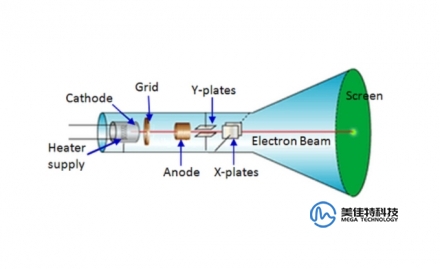 示波器是一种用途十分广泛的电子测量仪器。它能把肉眼看不见的电信号变换成看得见的图像,便于人们研究各种电现象的变化过程。示波器利用狭窄的、由高速电子组成的电子束,打在涂有荧光物质的屏面上,就可产生细小的光点(这是传统的模拟示波器的工作原理)。在被测信号的作用下,电子束就好像一支笔的笔尖,可以在屏面上描绘出被测信号的瞬时值的变化曲线。利用示波器能观察各种不同信号幅度随时间变化的波形曲线,还可以用它测试各种不同的电量,如电压、电流、频率、相位差、调幅度等等。