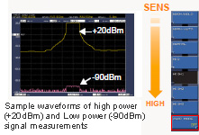 AQ6370B可以测量高达+20dBm的光功率,因此能够直接测量高功率光源,例如光放大器和拉曼放大器的泵浦激光器。按照测试应用和测量速度的要求,可以从7种类别中选择测量灵敏度。 |