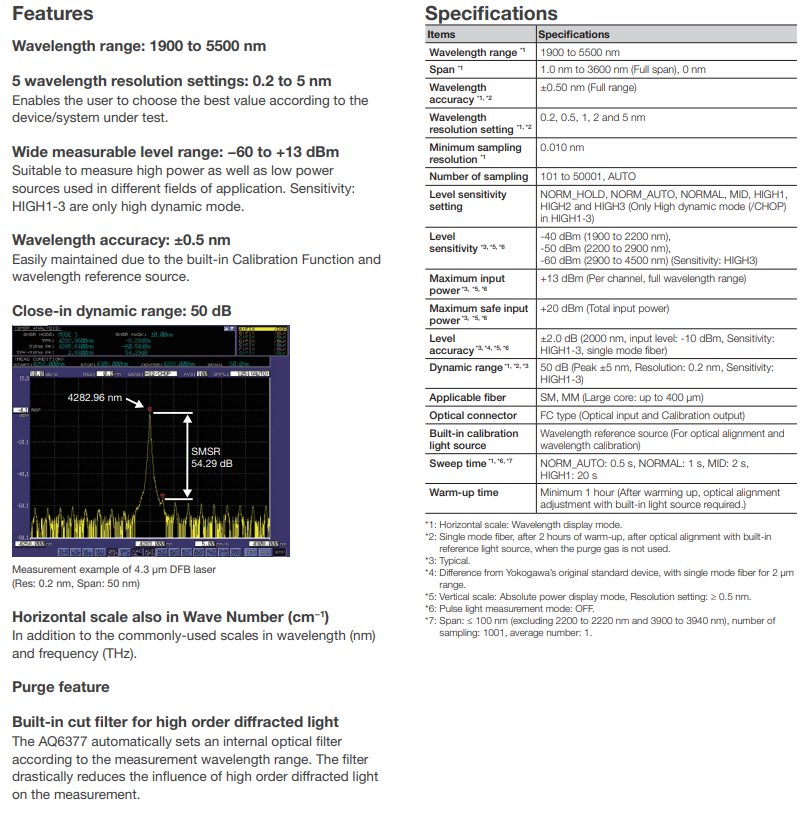 AQ6377是一款采用色散分光技术来测量1.9–5.5μm波长范围内激光光谱的台式分析仪,具有精度高、动态范围广和高分辨率等特点。
