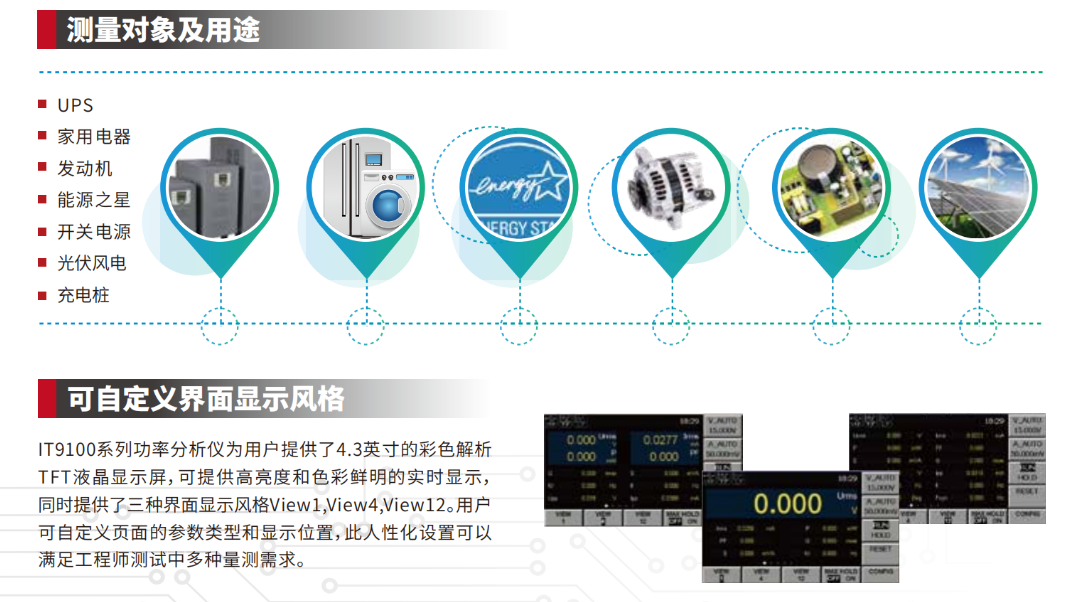 IT9100 系列功率分析仪提供1000 Vrms和50 Arms的**输入,以及100 kHZ的测量带宽,可以方便地进行电压、电流、功率、频率、谐波等参数的量测。标配有USB、RS232和以太网通信接口,您可以通过这些接口实现对IT9100功率分析仪的远程控制,同时您还可以利用USB外围设备接口,直接将量测参数保存到外部储存介质中。IT9100功率分析仪具有0.1%的电压、电流精度,同时还具有丰富的波形显示功能、积分功能。广泛应用于电机,家用电器,UPS等测试领域。