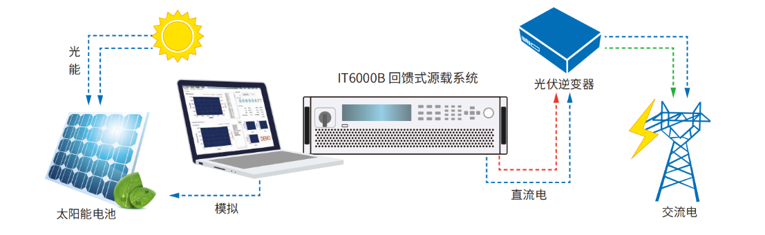 IT6000B系列采用SiC技术,将双向电源和回馈负载集成到了仅3U体积的一台仪器内。一个按键就可以让它在双向电源和回馈负载中间自由切换,不光可以作为一台独立的双向电源使用,实现source的功能,提供功率;也可以作为一台独立的回馈负载使用,不但可以吸收功率还能将消耗的能量清洁的返回至电网,具有标准的双象限功能。